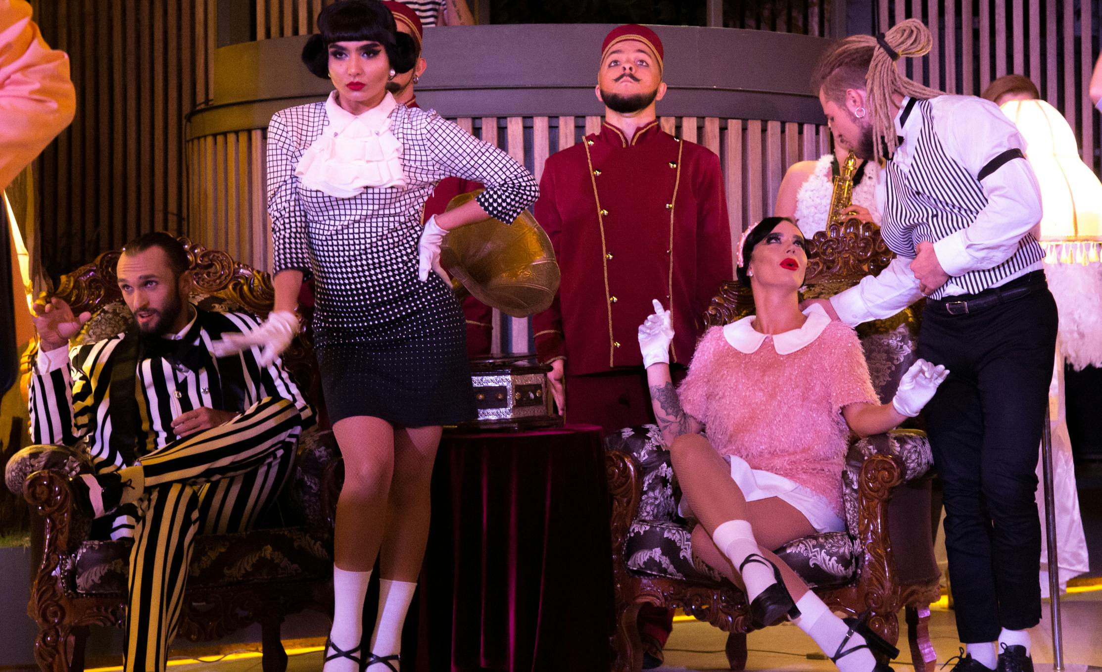 The time of vintage glamour is conveyed by an interesting choreography honed to flawlessness: lowered shoulders, snapping fingers, a "pigeon" gait, and angular movements. The special chic of this dance is revealed in different styles, such as contemporary, jazz, lindy hop, hip-hop, breakdance, modern, and pole dance elements. Artists of the original genre, vocalists, and jugglers will take you to Hollywood Street. Their performances will convey the energy of burlesque with amazing acrobatic instruments: a Cyr wheel, a unicycle, and a trampoline bed.
